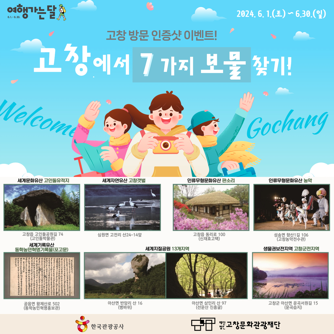 고창군 6월 여행 활성화를 위한 고창 방문 인증샷 이벤트 ‘고창에서 7가지 보물 찾기!’ 사업 공고