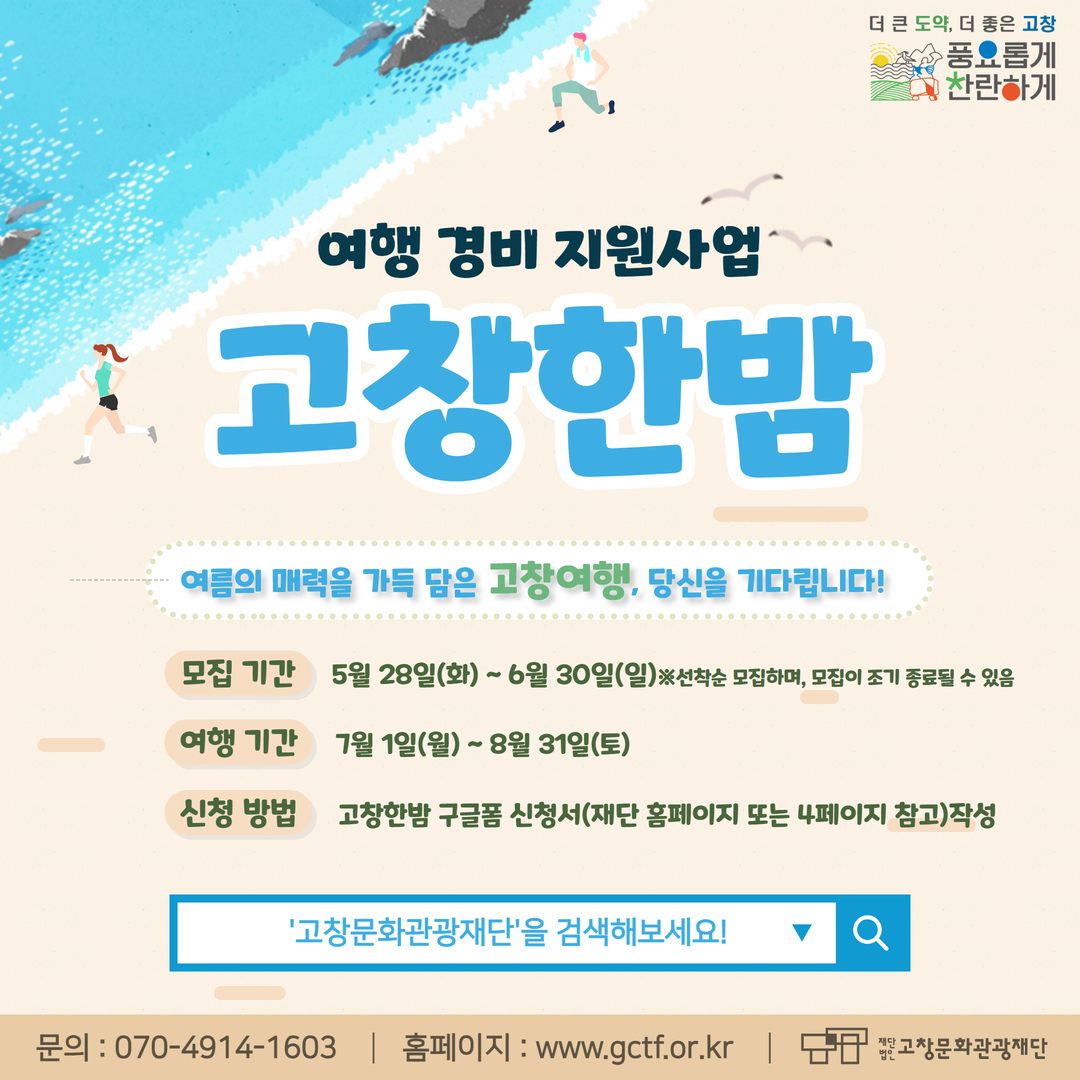고창 관광 활성화를 위한 사업으로 국내 개별 관광객들의 많은 참여 바랍니다.