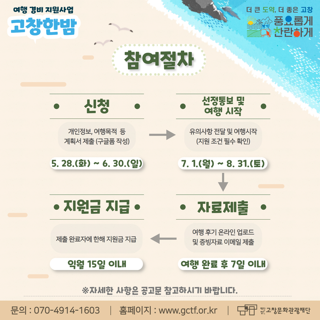 여행 경비 지원사업 「고창한밤」 참여자 모집 공고