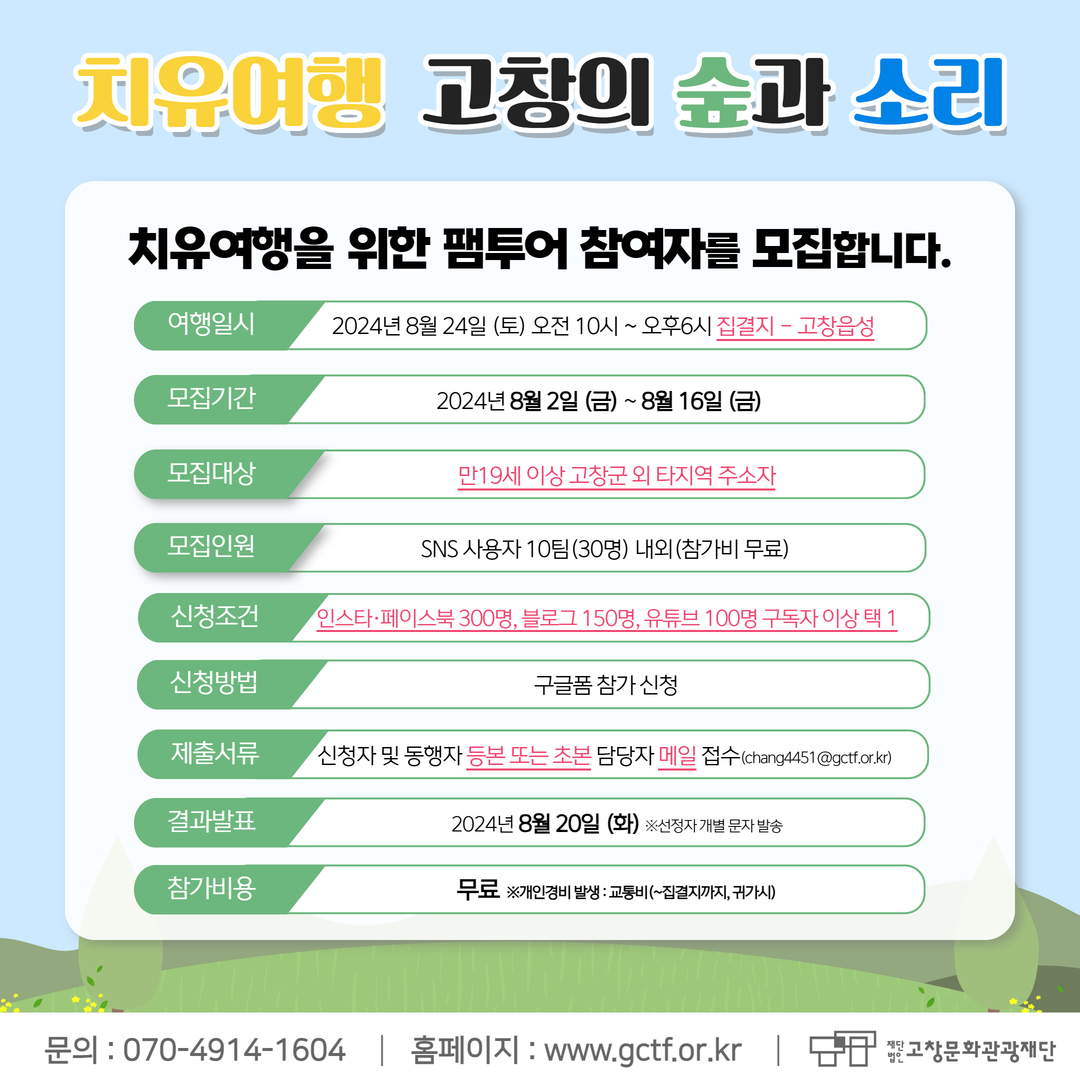 치유여행 – 고창의 숲과 소리 팸투어 참여자 모집 공고