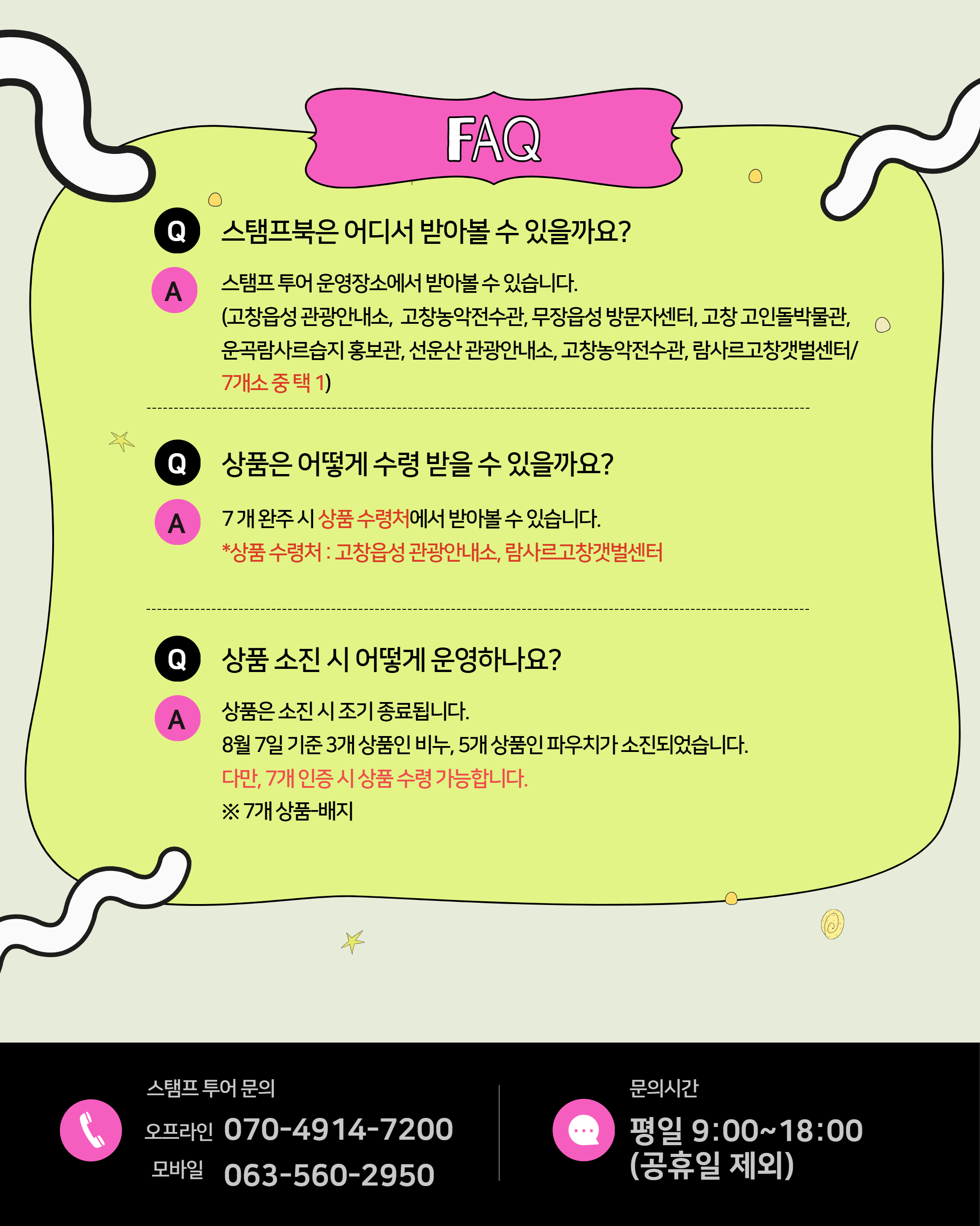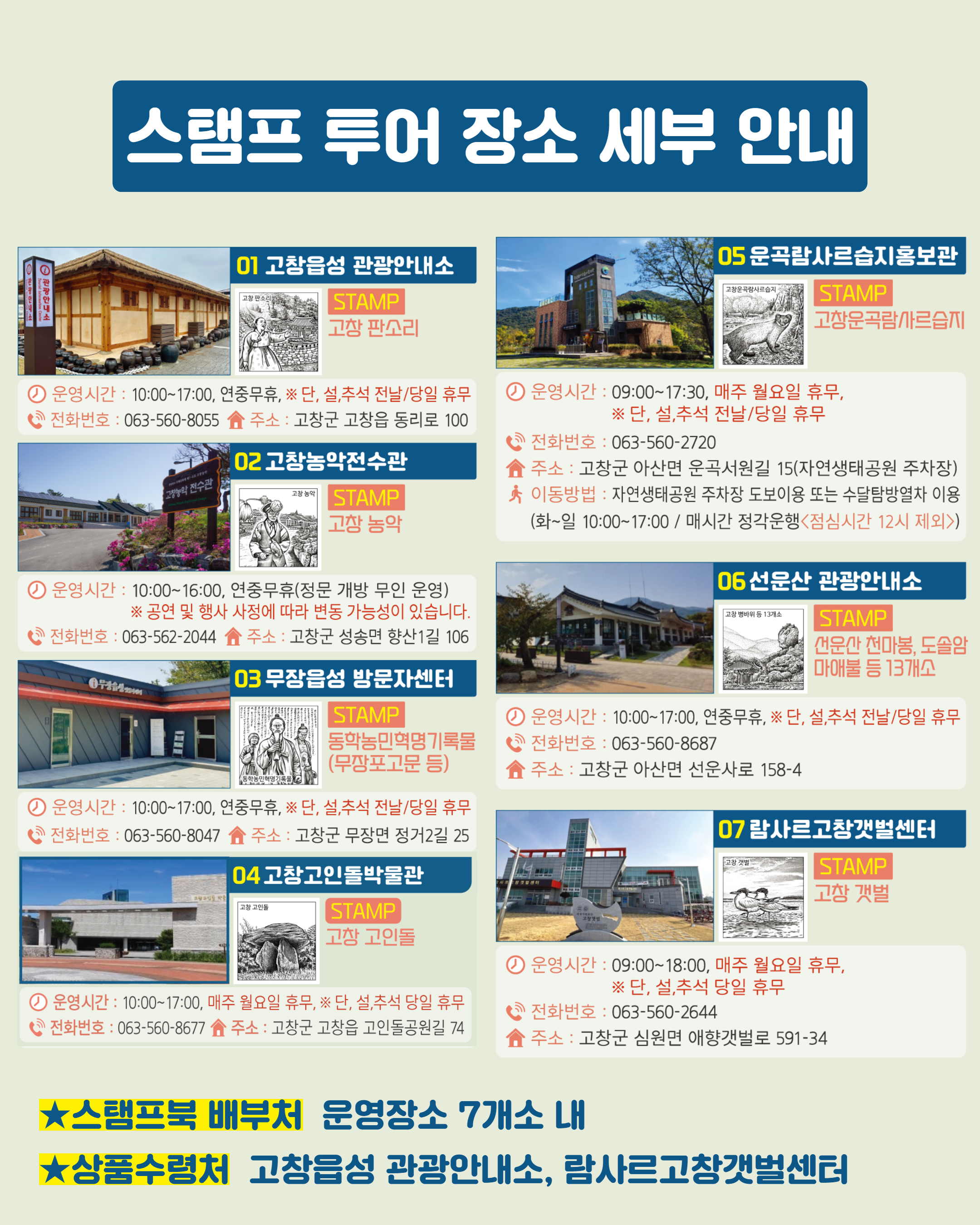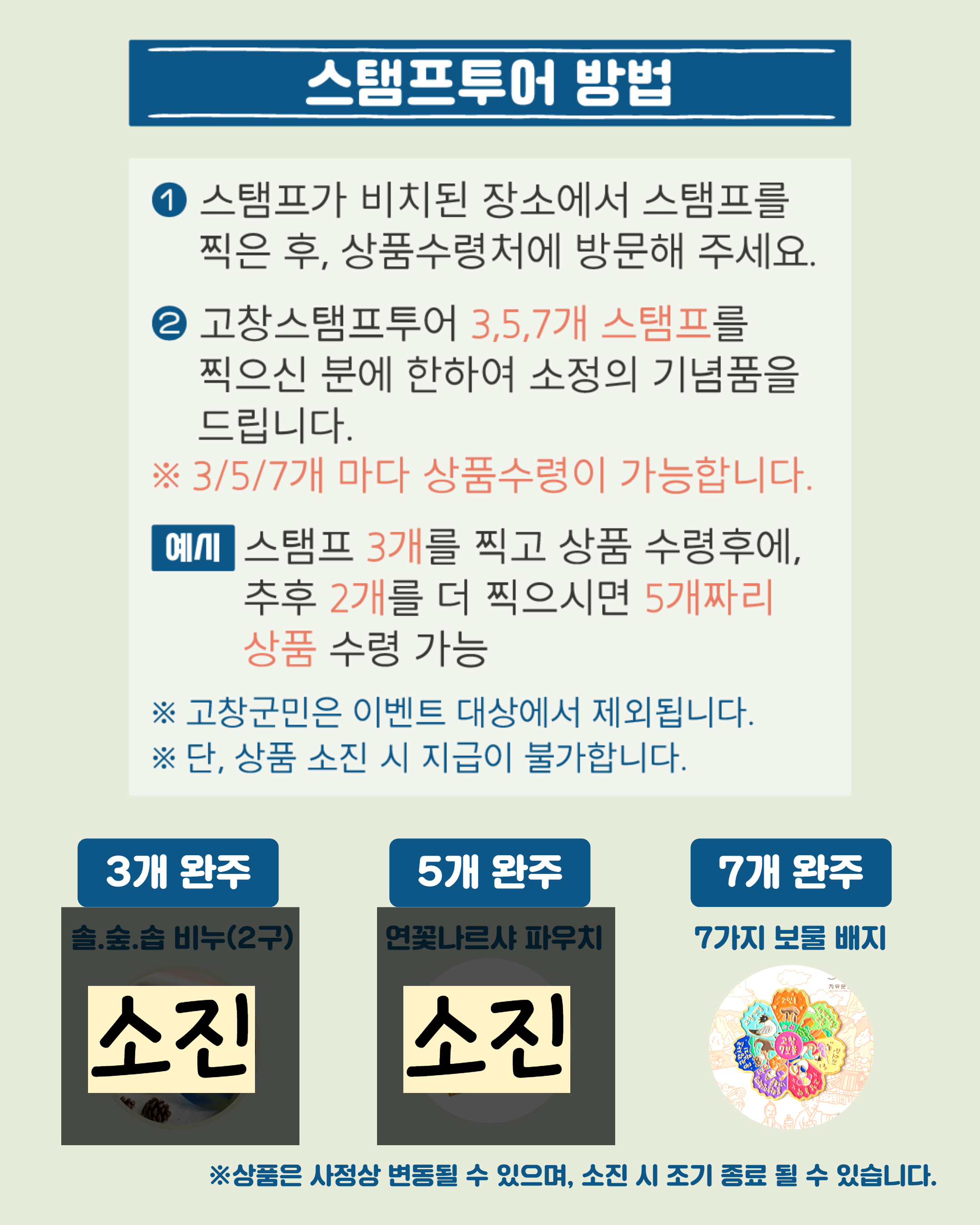 [안내]2025년 고창 7가지 보물 스탬프 투어 운영 안내(3개, 5개 인증 상품 소진)