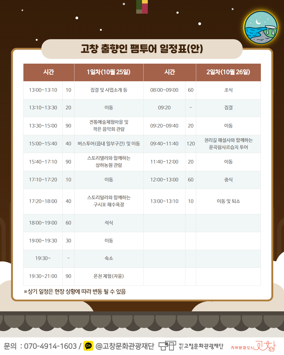 [공고 제2025-89호]‘고창 리턴즈 투어: 리멤버 고창한밤’팸투어 참가자 추가 모집 공고