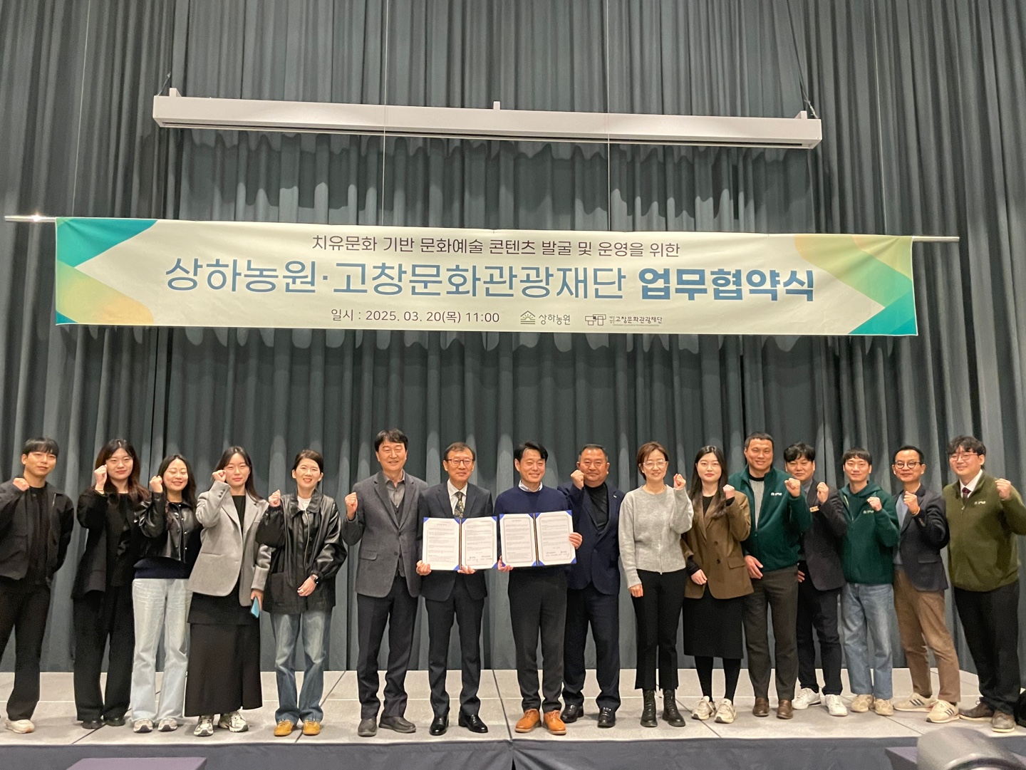 고창문화관광재단(이사장 심덕섭)과 상하농원(대표이사 권태훈)이 지난 20일 치유문화 예술자원 활성화를 위한 업무협약을 체결했다.