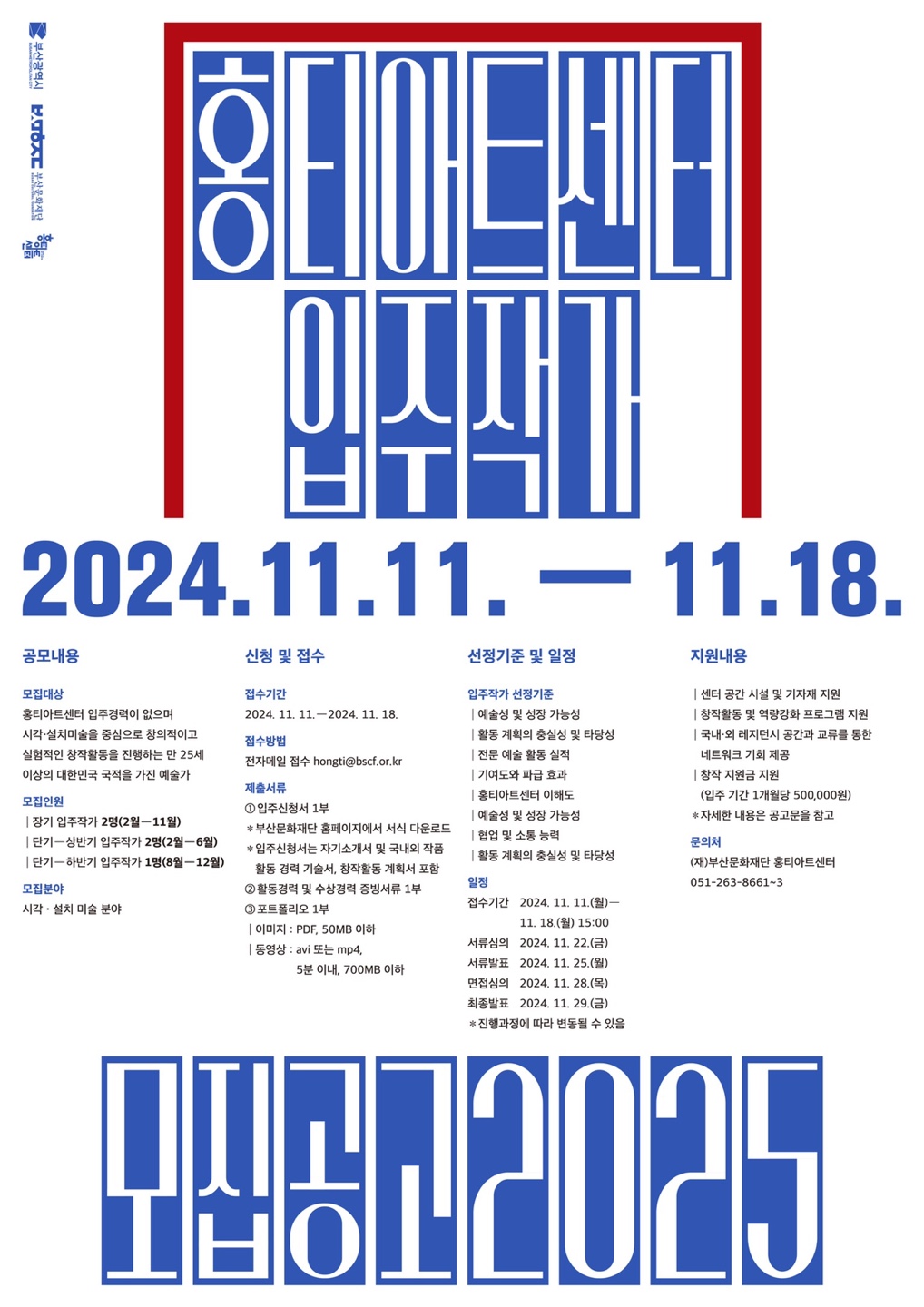[부산문화재단] 2025년 홍티아트센터 입주작가 공모 계획