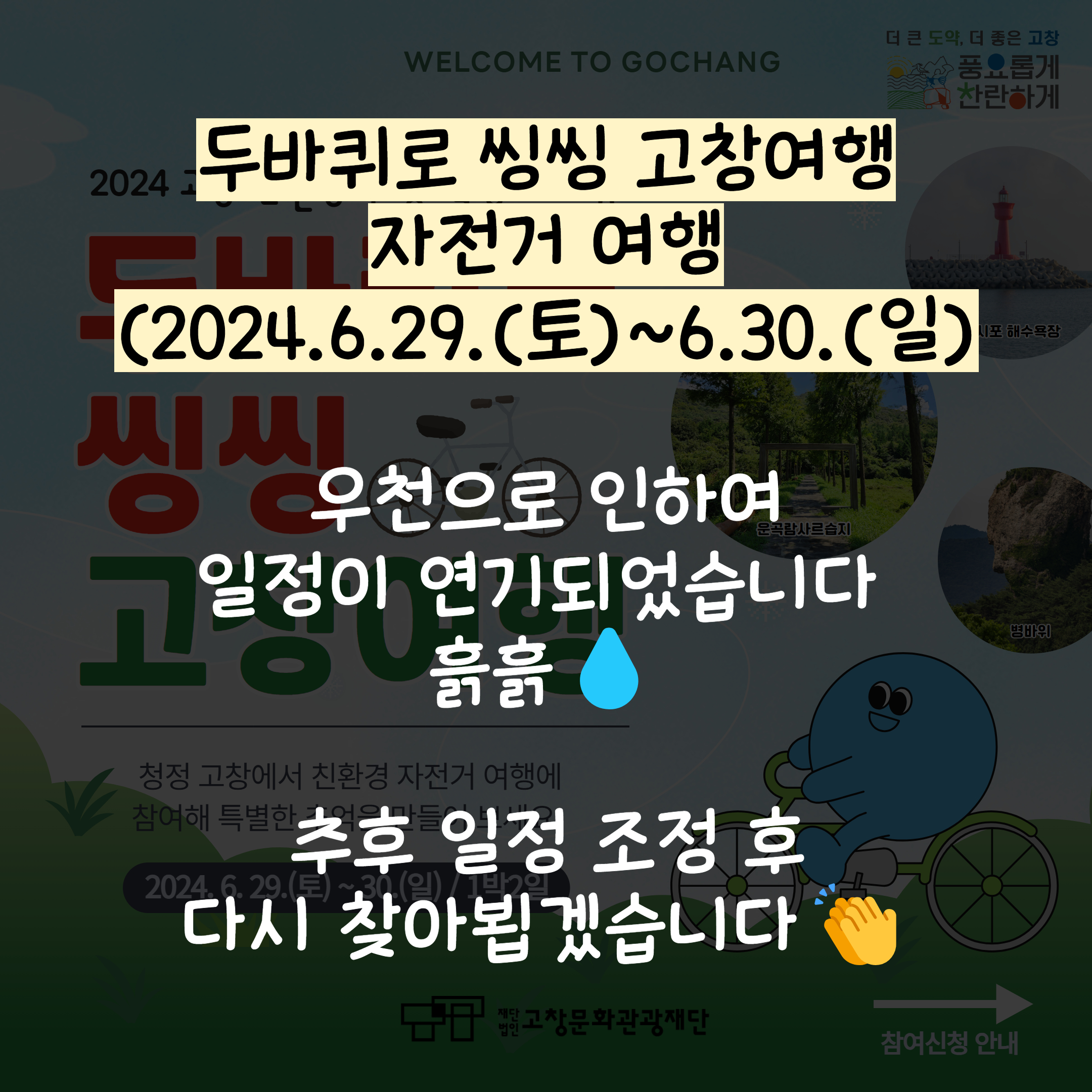 [안내]2024년 친환경 관광 활성화 사업 '두 바퀴로 씽씽 고창 여행' 참여자 모집(우천 취소)