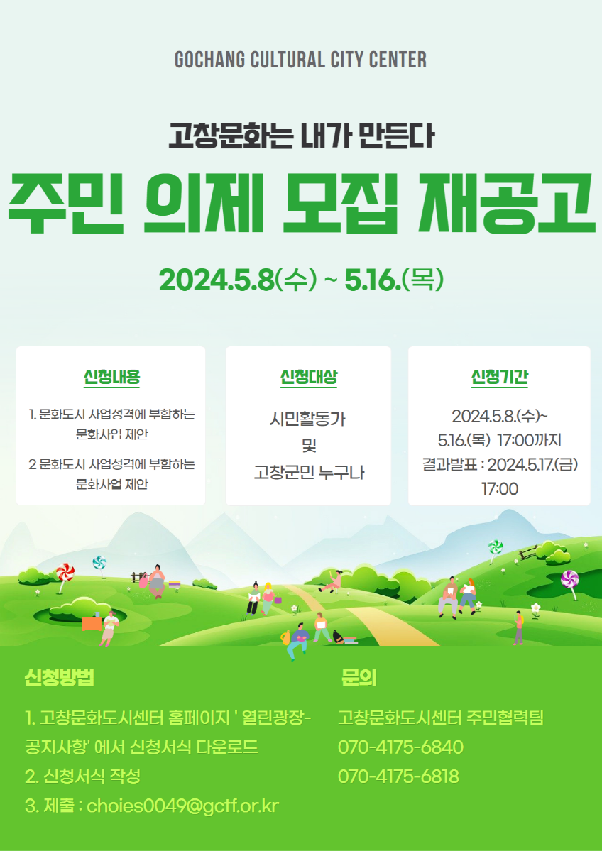 고창문화를 이끌어나갈 주민 여러분의 많은 관심과 참여 바랍니다.