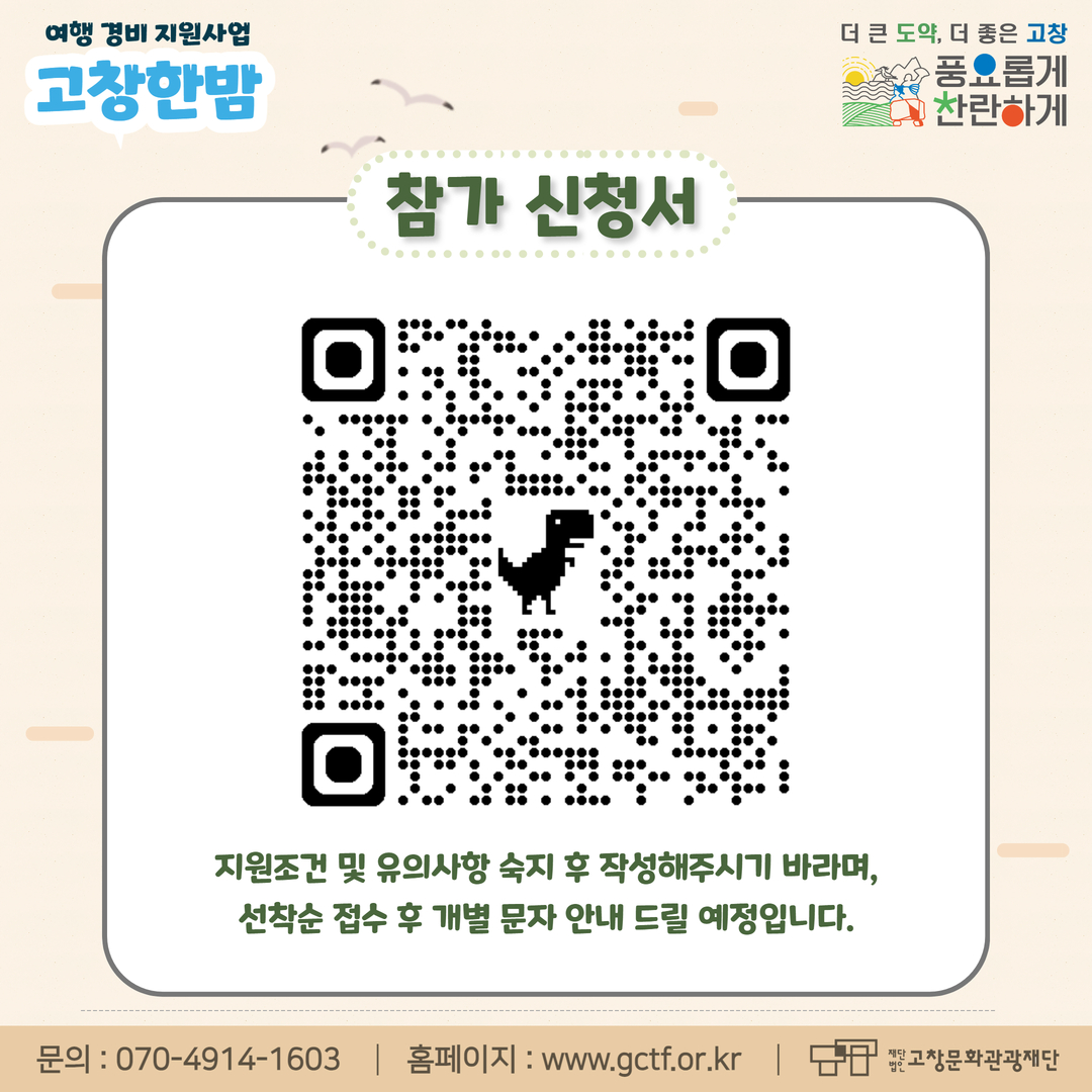 고창 내 체류형 관광객 유입을 위한 여행 경비 지원사업 고창한밤 참여자를 다음과 같이 모집합니다.