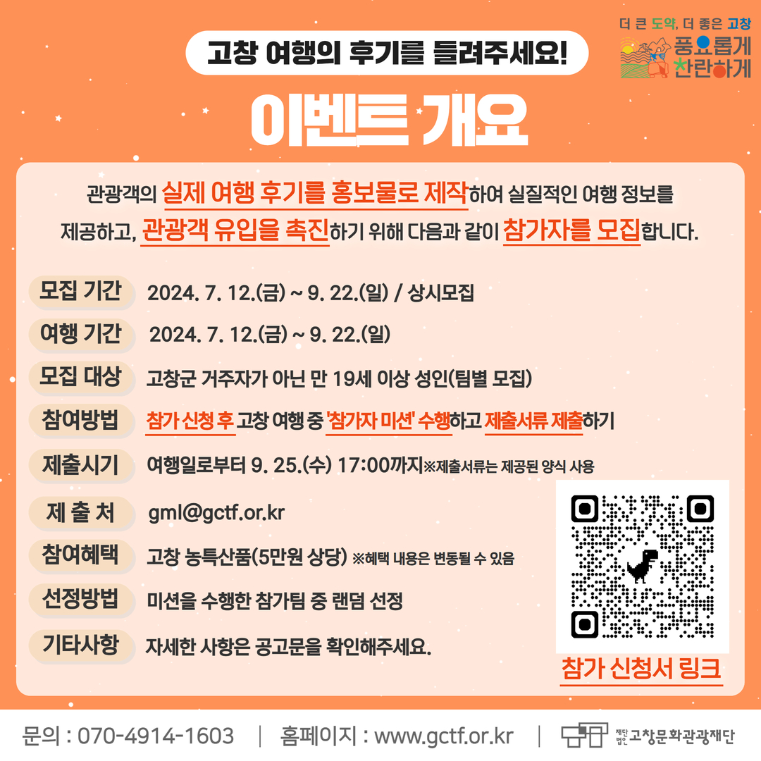 ‘고창 여행의 후기를 들려주세요!’사업 참가자 모집 공고