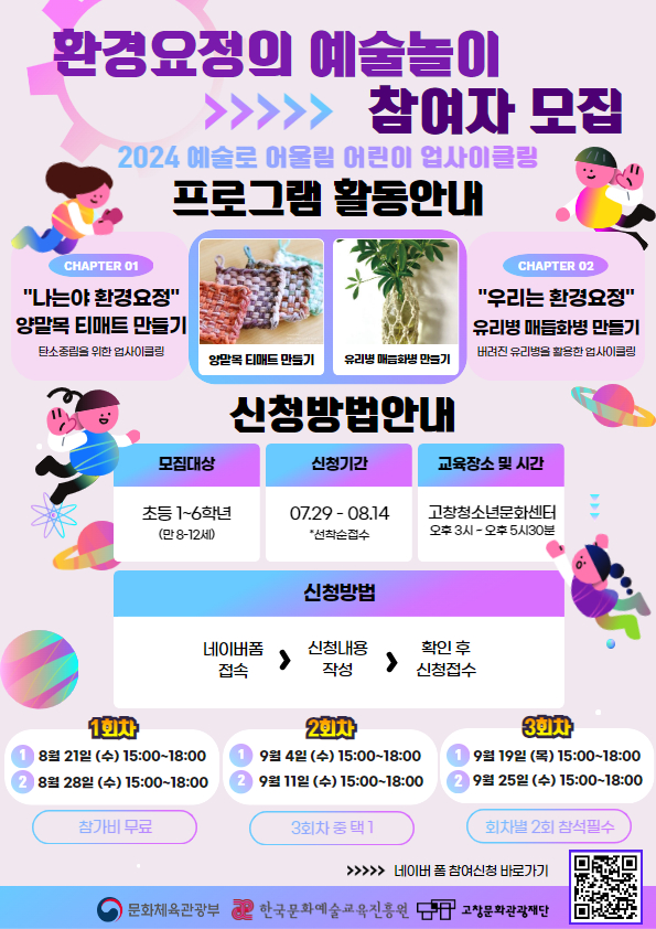 (재)고창문화관광재단은 2024 예술로 어울림 공모사업의 일환으로 ‘환경요정의 예술놀이'를 운영합니다.