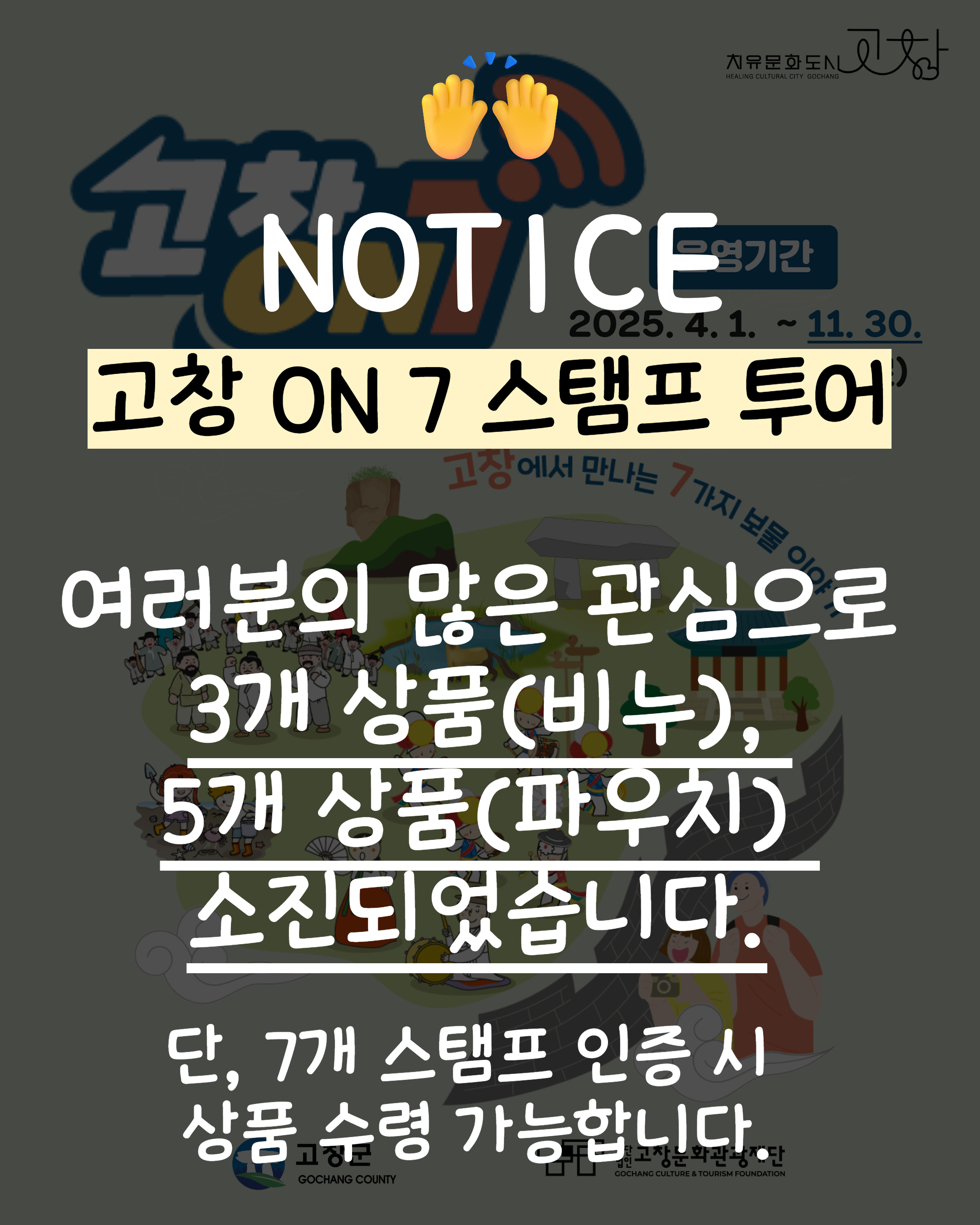 [안내]2025년 고창 7가지 보물 스탬프 투어 운영 안내(3개, 5개 인증 상품 소진)