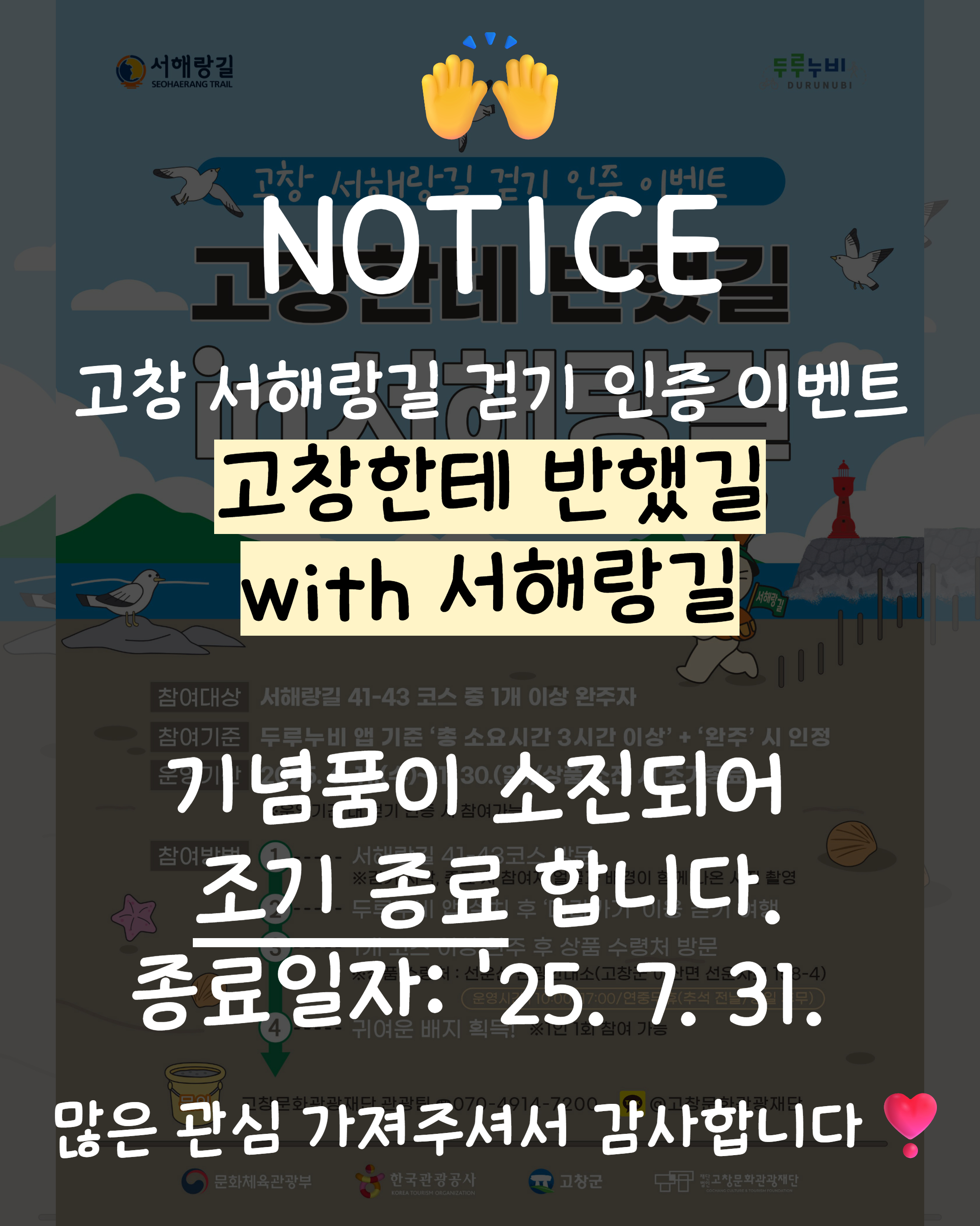 [안내]2025년 고창 서해랑길 걷기 인증 이벤트 '고창한테 반했길 in 서해랑길' 안내(조기종료)