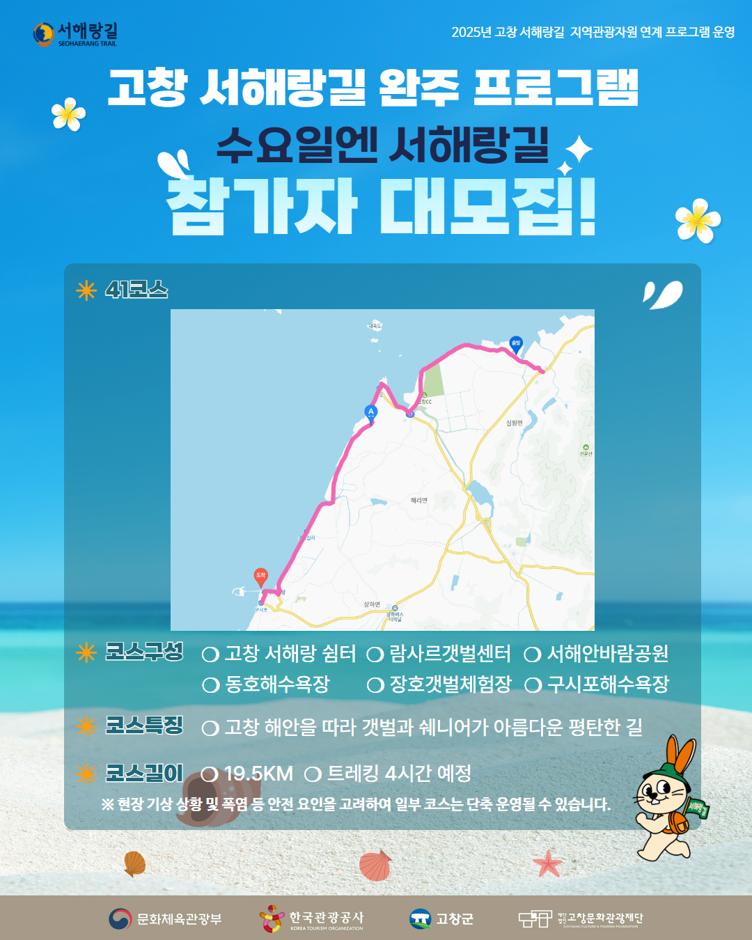 2025년 고창 서해랑길 완주 프로그램 참가자를 모집하오니 많은 관심과 참여 바랍니다.