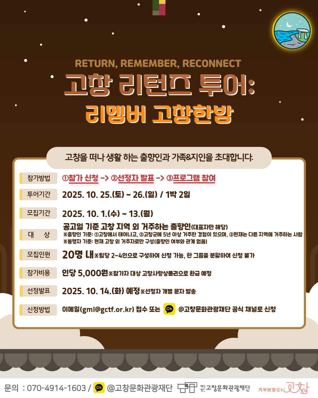 [공고 제2025-89호]‘고창 리턴즈 투어: 리멤버 고창한밤’팸투어 참가자 추가 모집 공고