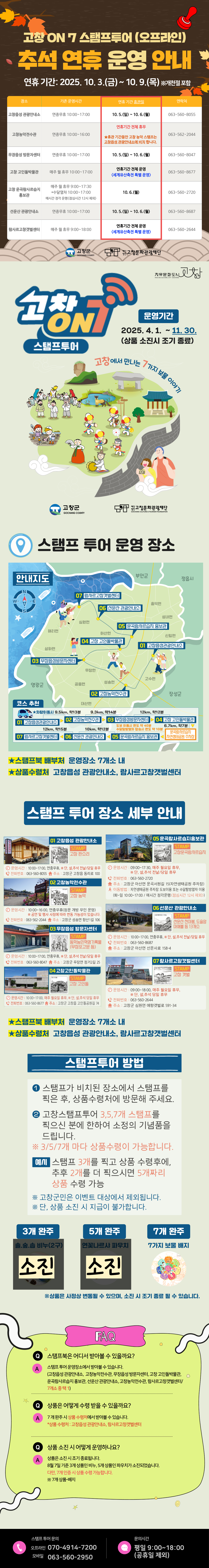 [안내]2025년 고창 7가지 보물 스탬프 투어 추석 연휴 휴관 안내