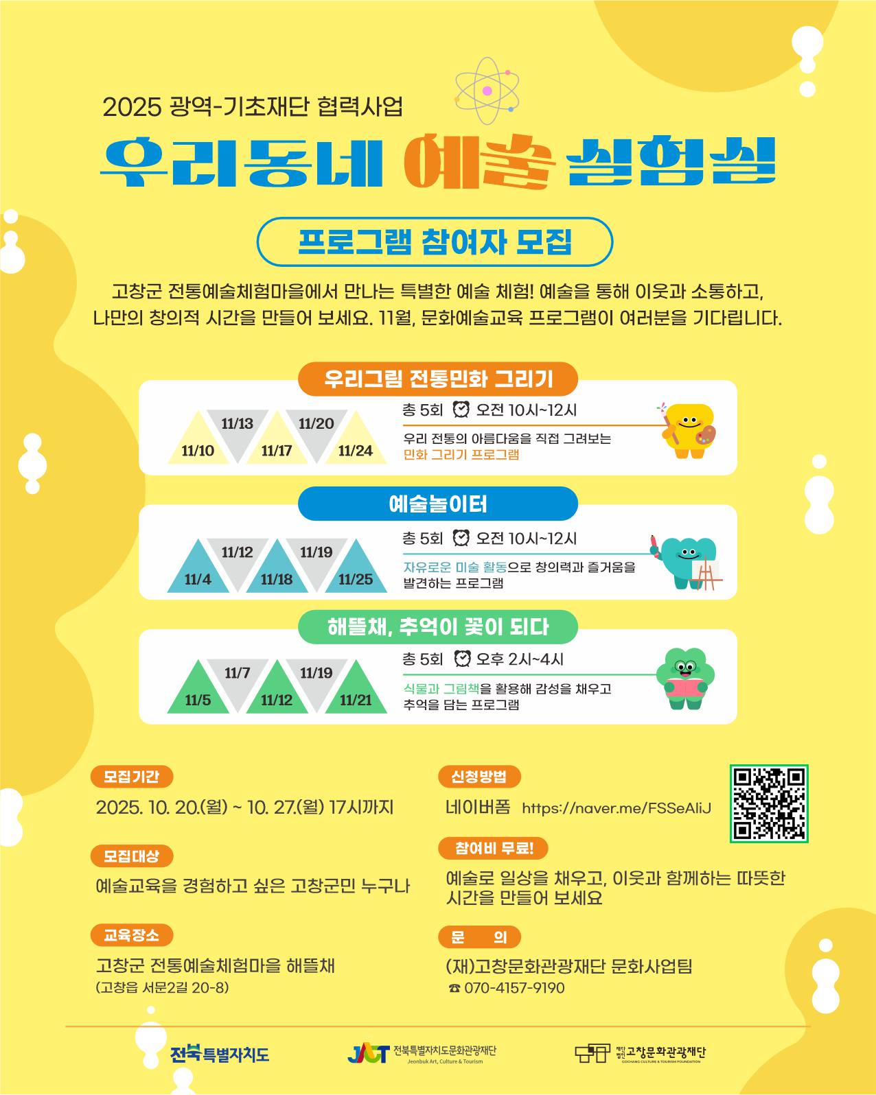 (재)고창문화관광재단은 지역 주민들이 일상 속에서 예술을 가까이 누리고, 창의적 표현을 통해 서로 소통할 수 있도록