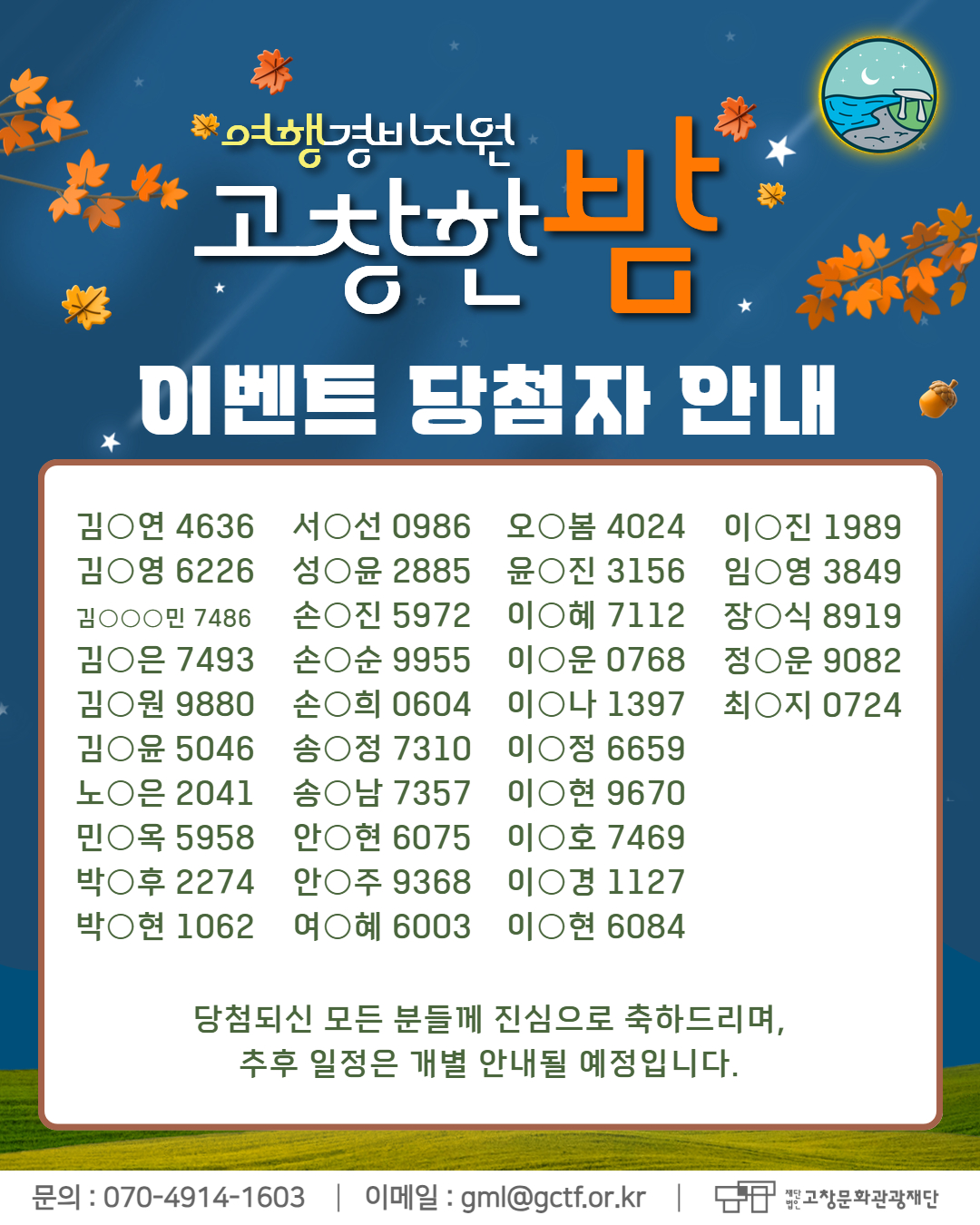 2025년 여행경비지원 고창한밤 연계 하반기 특별이벤트 선정자 안내