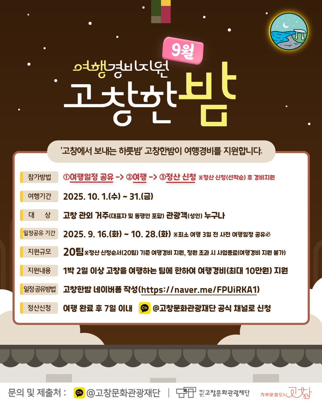 고창문화관광재단, ‘고창한밤’ 10월 여행자 모집 시작!