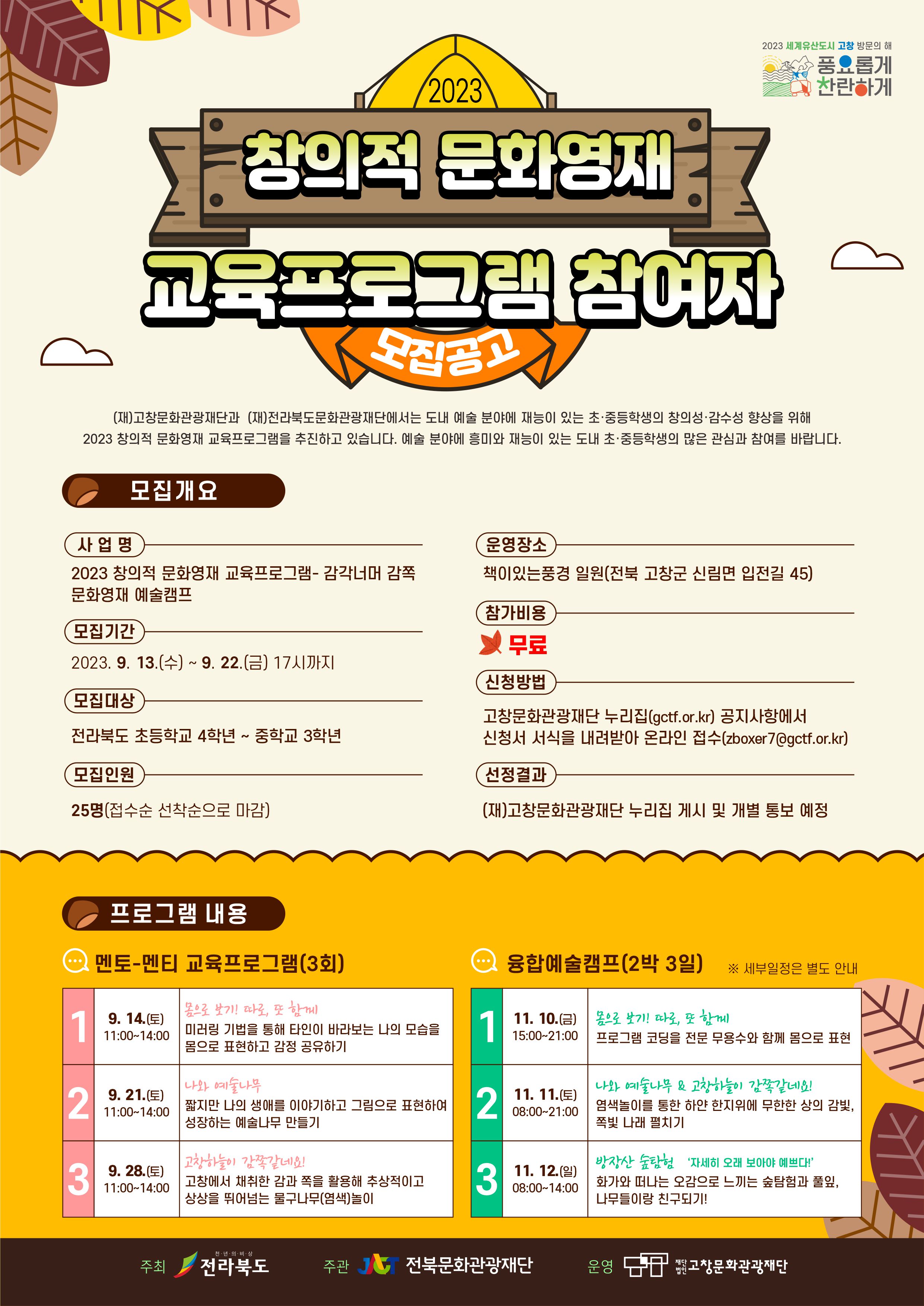 창의적 문화영재 교육프로그램 참여자 모집공고