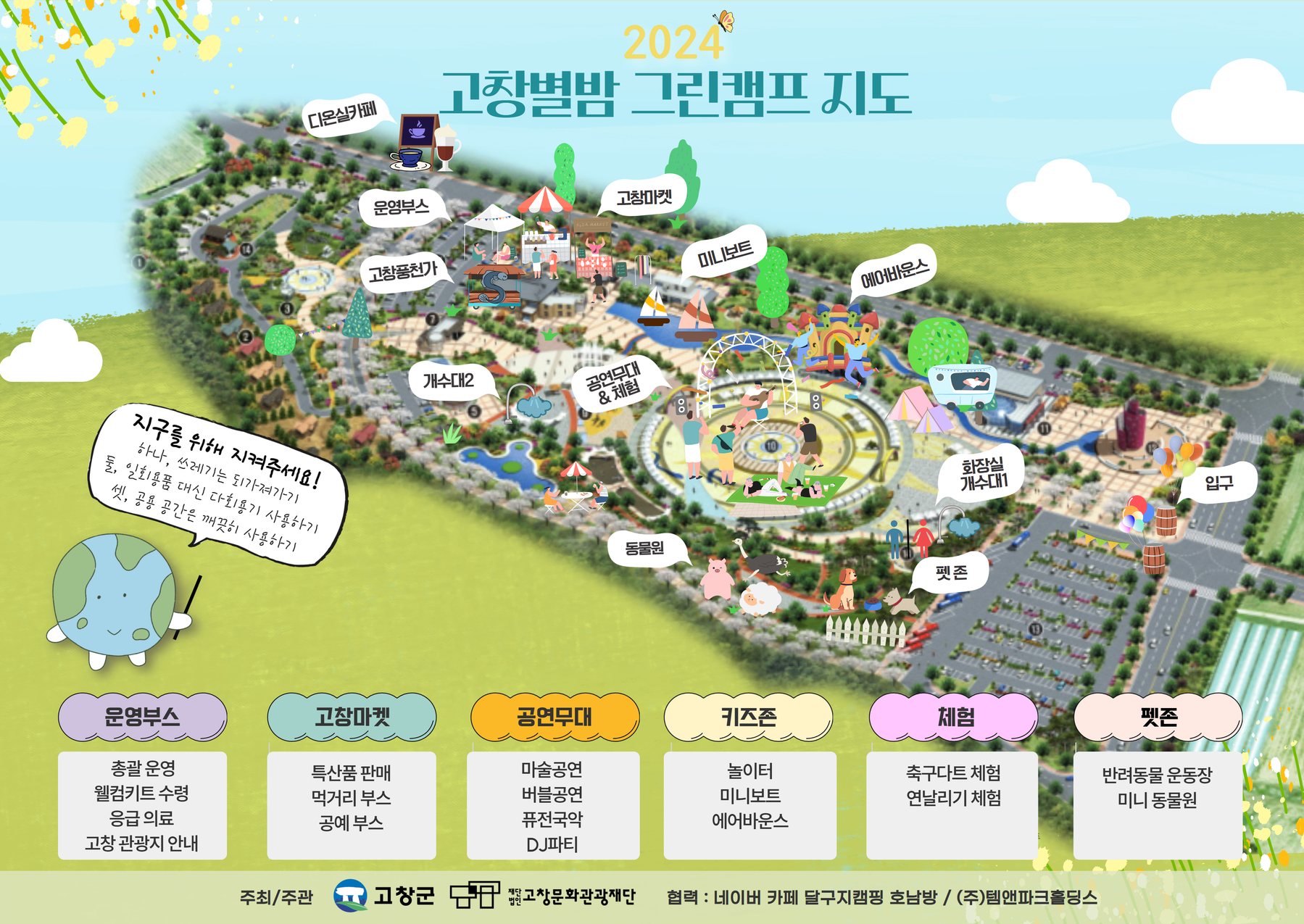 복분자클러스터 유원지를 중심으로 문화 체험 프로그램과 공연을 준비한 2024 고창별밤 그린캠프에 많은 관심 바랍니다.
