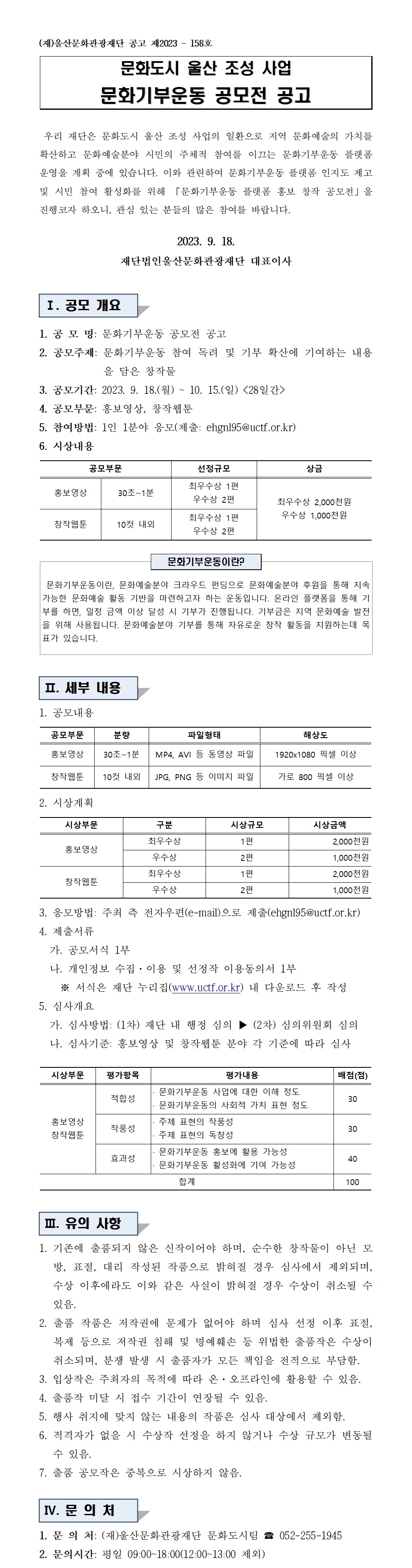 [울산문화관광재단] 문화기부운동 플랫폼 홍보 창작 공모전