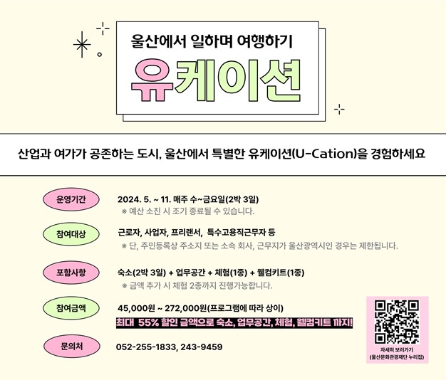 [울산문화관광재단] 울산형 워케이션 「유케이션」참여자 모집
