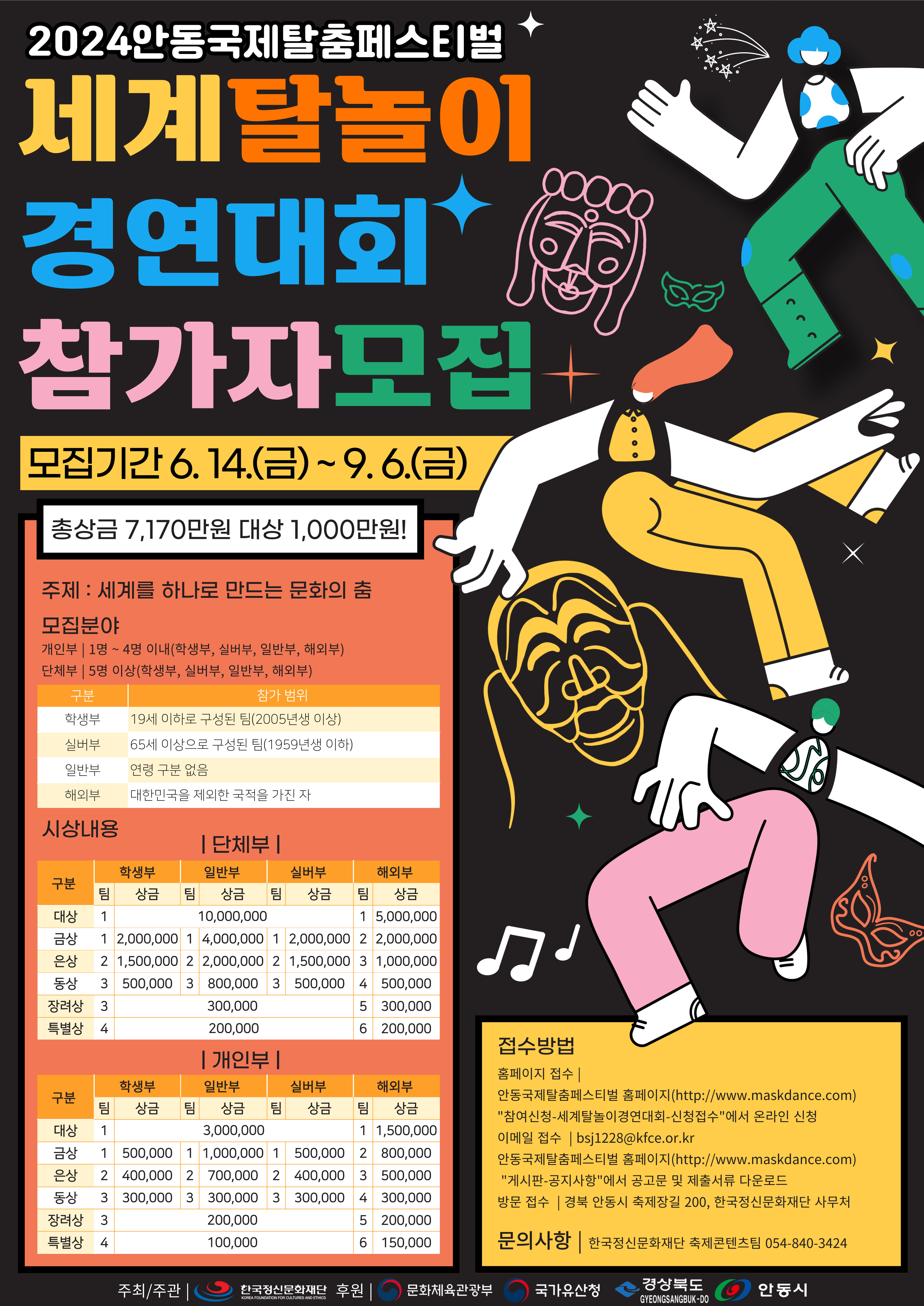 [한국정신문화재단] 2024 안동국제탈춤페스티벌 세계탈놀이경연대회 참가자 모집
