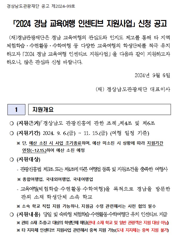 (붙임1) 2024 경남 교육여행 인센티브 지원사업 신청 공고문 및 신청서식집_최종.hwp