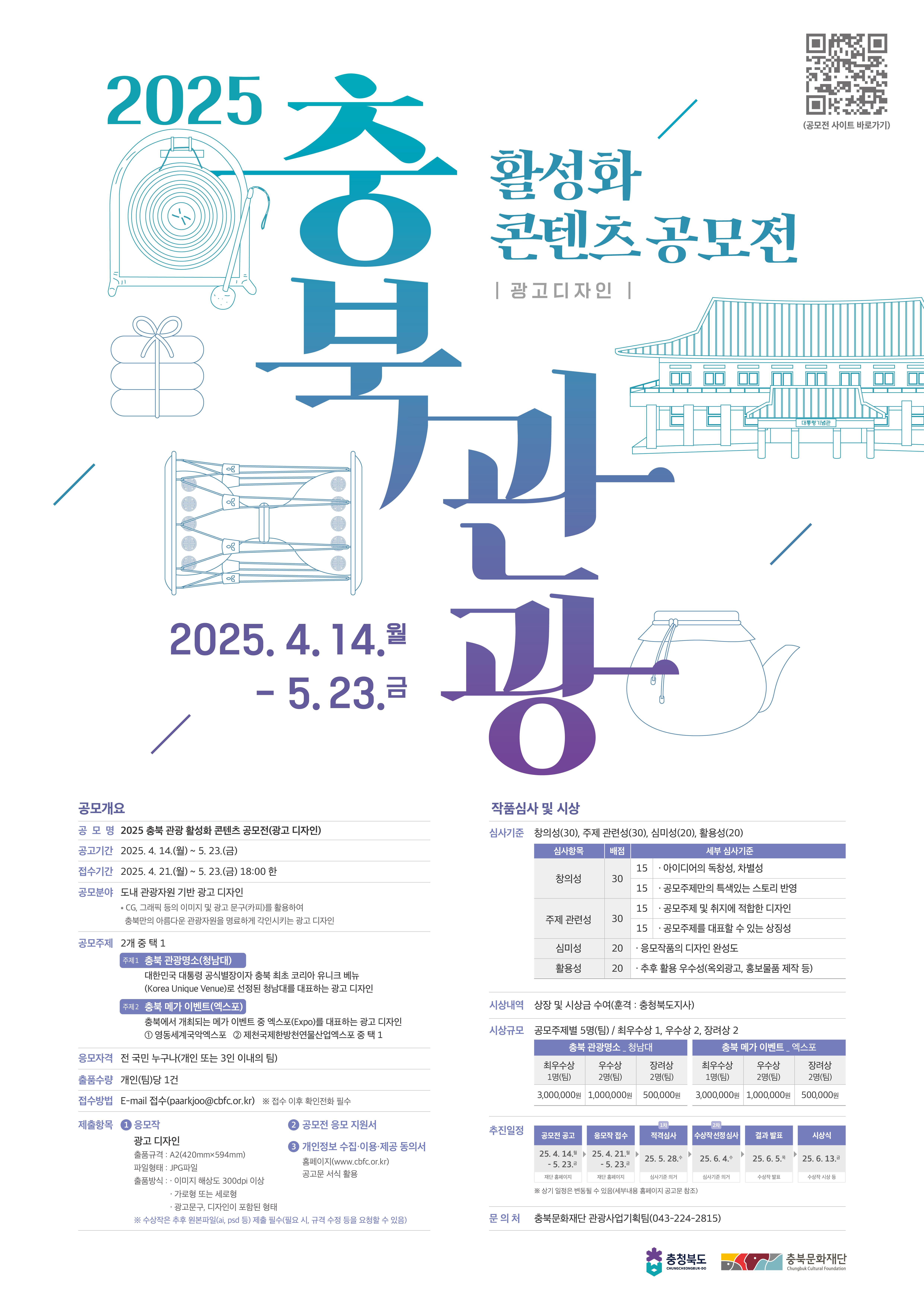 [충북문화재단] 2025 충북 관광 활성화 콘텐츠 공모전(광고디자인) 안내