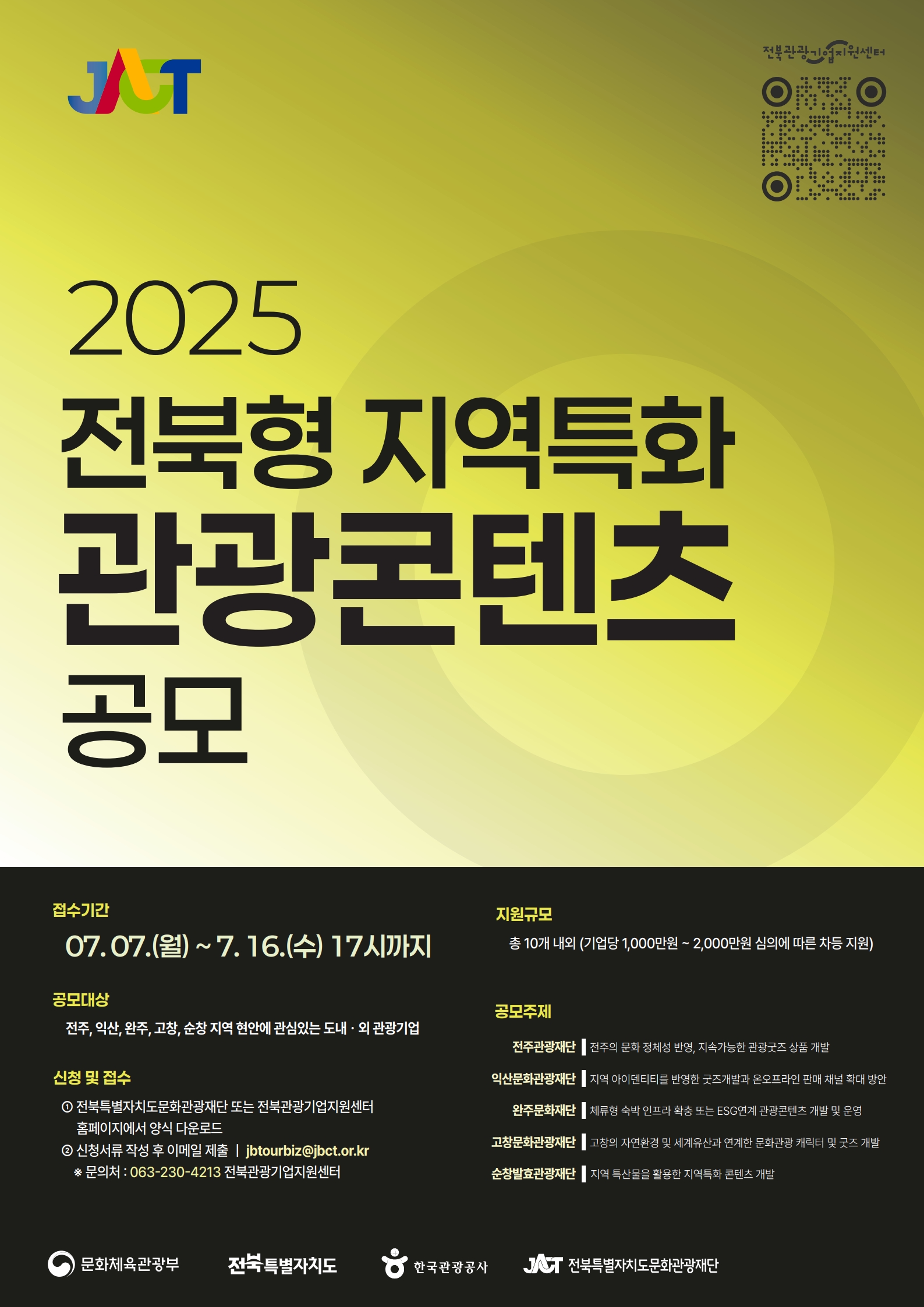 [전북특별자치도문화관광재단] 2025 전북형 지역 특화 관광콘텐츠 지원 공모 사업 참여 기업 모집
